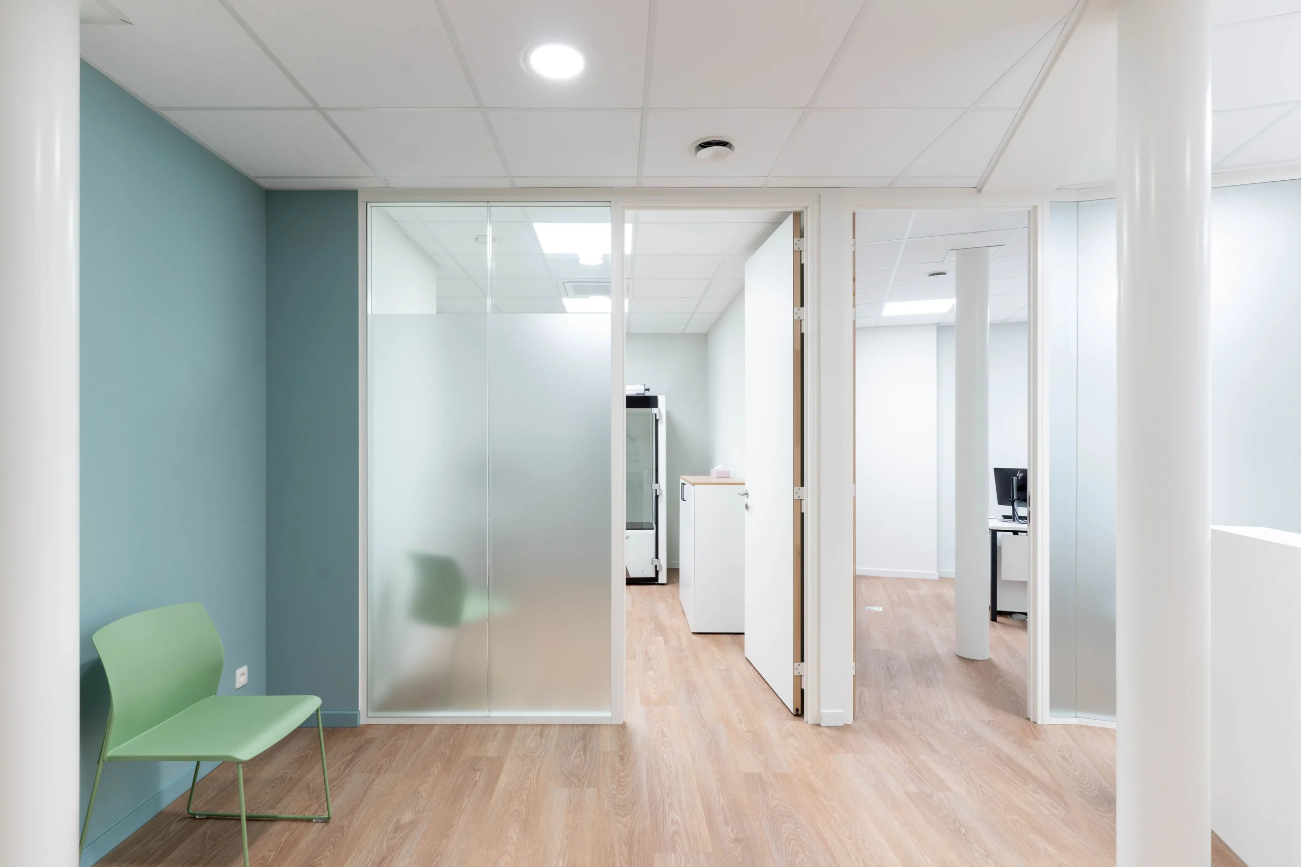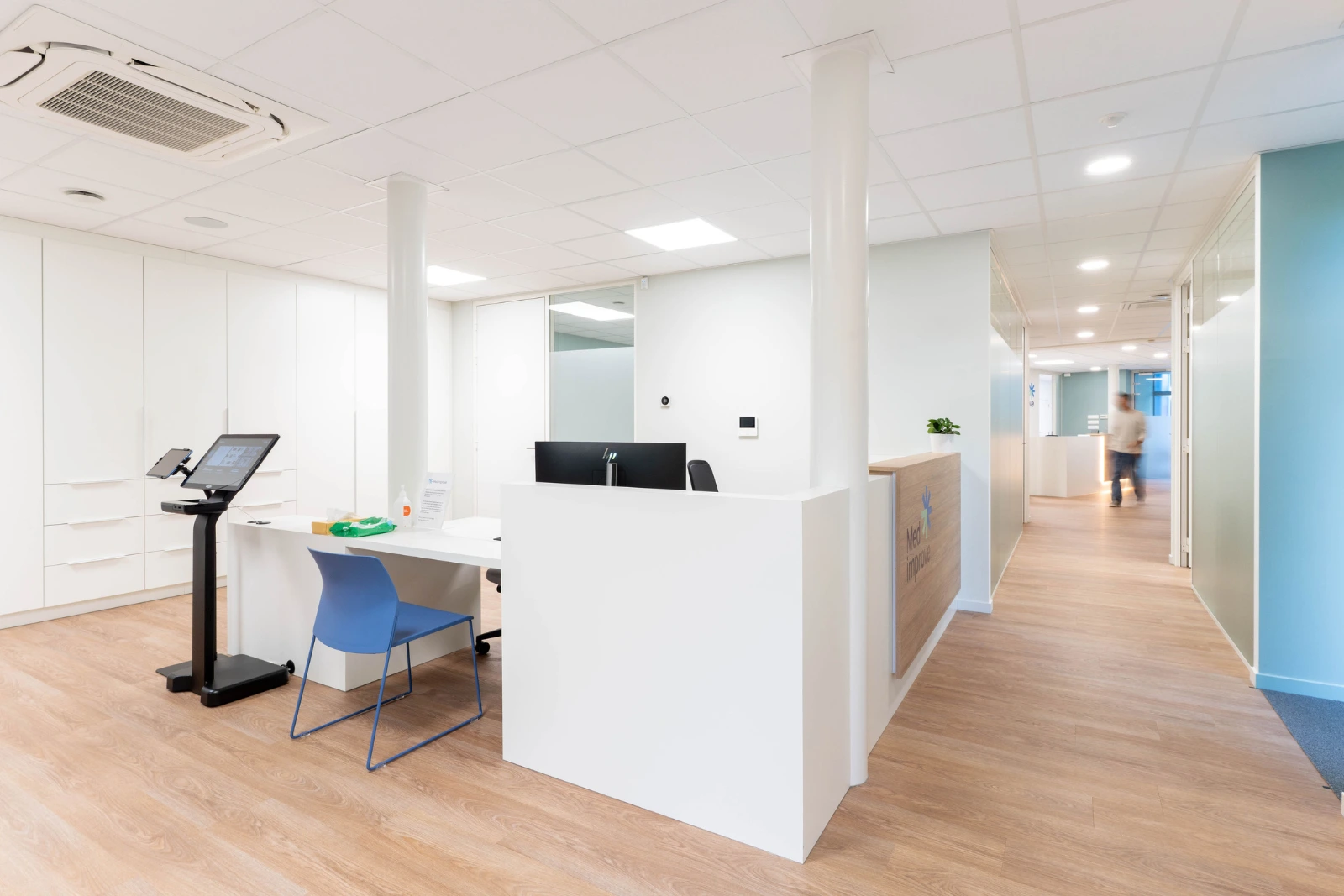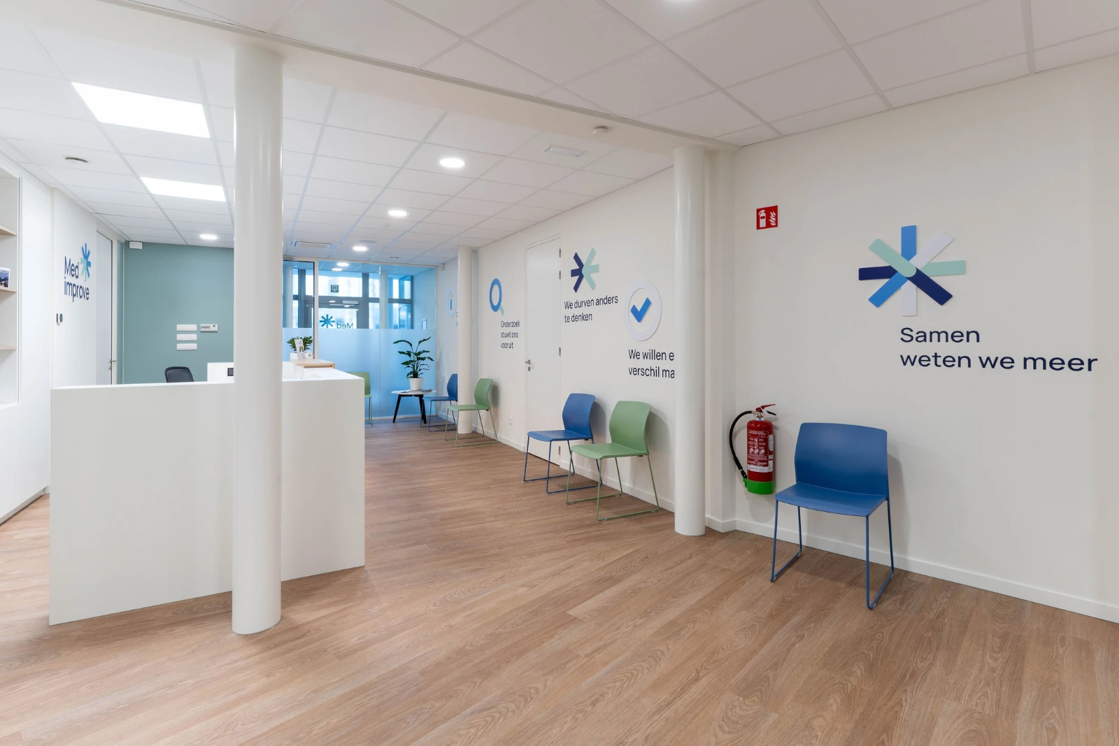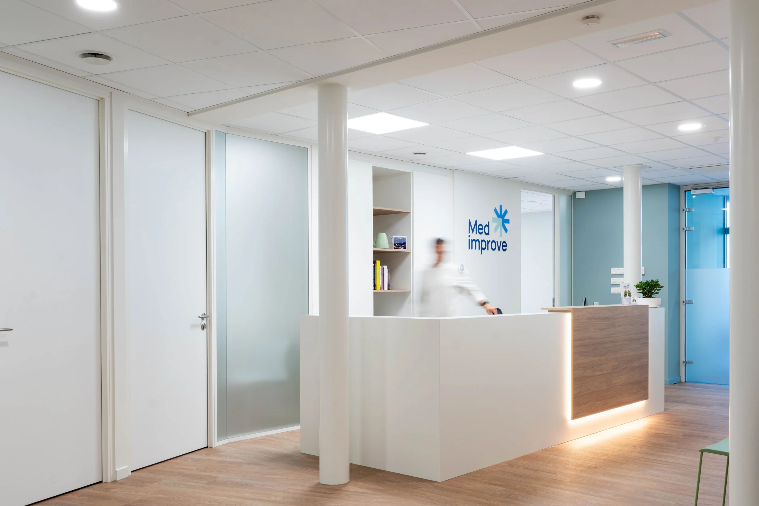 In Mortsel werkten we aan de volledige inrichting van Medimprove, een medische praktijk voor mensen met een longziekte. Het doel was om een omgeving te creëren die zowel professioneel als uitnodigend is. Strakke lijnen en een nette uitstraling vormen de basis, terwijl warme houtaccenten en de kleuren uit de huisstijl het interieur een persoonlijk karakter geven. Daarnaast werd veel aandacht besteed aan privacy en akoestiek, zodat patiënten zich comfortabel voelen tijdens hun bezoek.